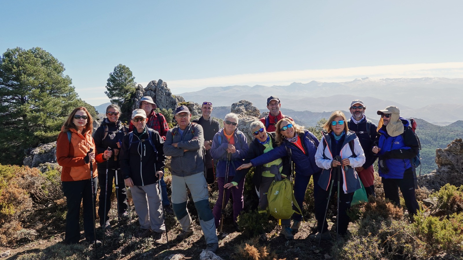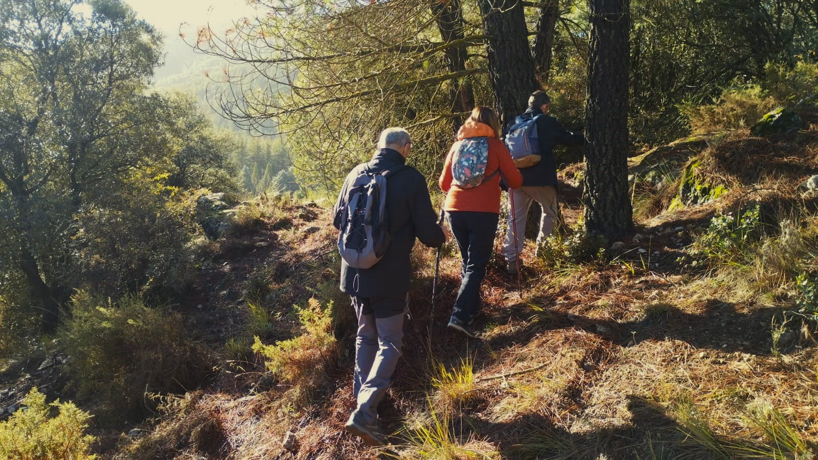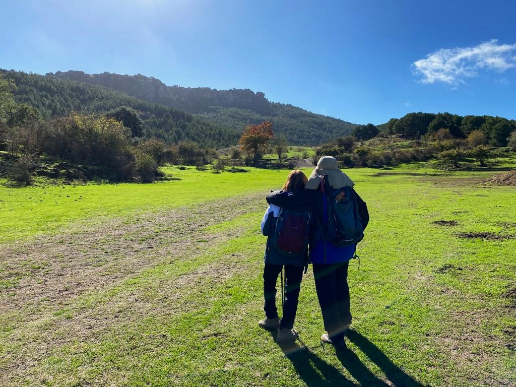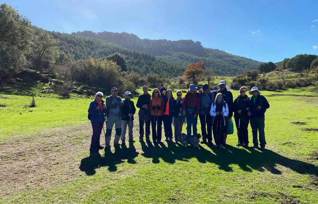 Este domingo nos hemos adentrado de nuevo en la Sierra de Huétor, una vez más, y no nos cansamos de pisotearla por su intensa belleza. Desde los primeros pasos ya nos adentramos en sus pinares, hoy con un suelo húmedo por las recientes lluvias, con su alfombra tupida por su intensa capa vegetal. Una docena de senderistas en busca de la Fuente de la Mora, un paraje que aún conserva su manantial y zona de setas de gran tamaño, que nos hacen descansar unos minutos contemplándolas. Ya, de nuevo, seguimos para alcanzar la cima del Mirador de la Sierra para contemplar Sierra Nevada con sus primeras nieves, un cielo azul intenso y un sol que se agradecía por las ya frescas temperaturas. La vuelta por el Cortijo Chorrillo y su prado verde, nos ofrece un otoño de contrastes con sus típicos ocres.